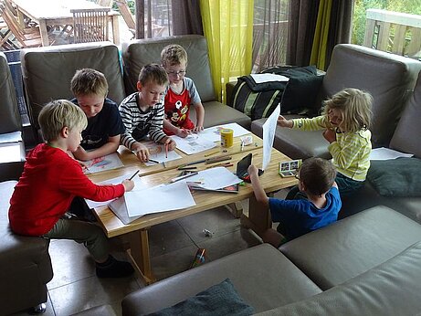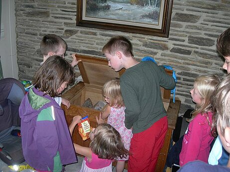 Eine weitere Schnitzeljagd haben einige Kinder selbst für andere Kinder gelegt - wetterbedingt lieber drinnen.