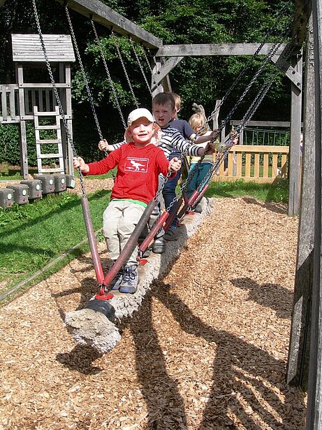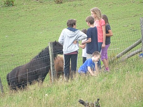 Aber auch vor dem Haus war es schön mit ein paar Spielgeräten und Pferden